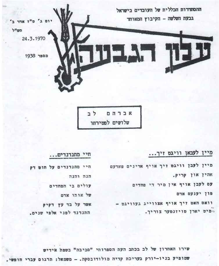 – ליבל החלוץ; מיידיש: ש’ מלצר, תל אביב: גזית, תש"ב.