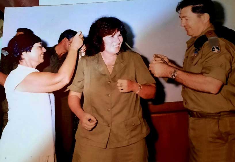 הרמטכ"ל דן שומרון מעניק לשלומית את דרגת האלוף משנה . אמא סונקה מצד שני.